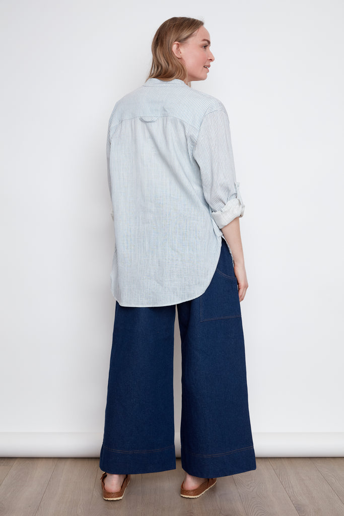 Voici notre chemise boy-friend ample avec poche poitrine et poche géante, ornée de jolis boutons en nacre de couleur laiton. Se porte a merveille avec tous les pantalons de la collection Julei.