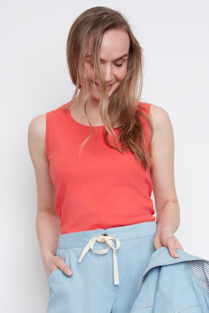 Débardeur ajusté en côtes 1x1 avec une belle encolure ronde . Ideal pour porter en dessous de vestes ou de chemises. Agencer sans modérations a toute la collection Julei du Printemps-été 26. La matière de coton est douce, confortable et extensible avec un poids moyen pour une belle tenue.