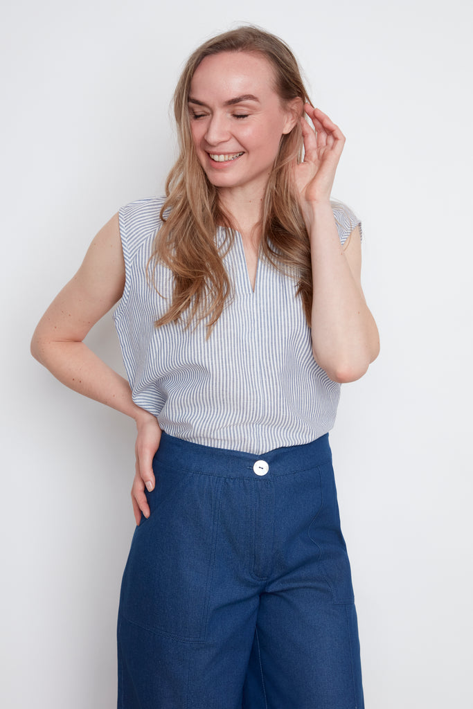 Le débardeur plissée a l'encolure est le nouveau haut de la collection avec une belle ouverture au devant, se porte avec le denim casual ou un style plus habillée